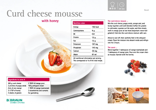 Some of our dishes contain ingredients like chili and garlic. Please be sure to adjust the spice level of the chili to suit your own tastes. Oil and butter are good sources of energy, since foods high in carbohydrates often contain a lot of potassium. Harzer cheese and Parmesan cheese contain more protein per 100g than meat or fish. But please note that both types of cheese are very salty and consuming them may lead to increased thirst.